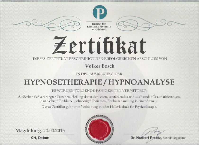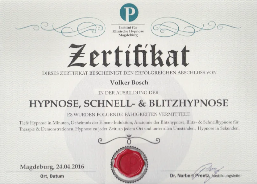 Ein seriöser Hypnose-Coach bringt eine fundierte, mehrstufige Ausbildung mit – idealerweise bei einer anerkannten Institution wie der Deutschen Gesellschaft für Hypnose (DGH), der Milton Erickson Gesellschaft (MEG) oder einem vergleichbaren Fachverband. Er kann seine Zertifizierungen transparent nachweisen, arbeitet nach klaren ethischen Grundsätzen und wird dir niemals das Gefühl geben, von ihm abhängig zu sein.