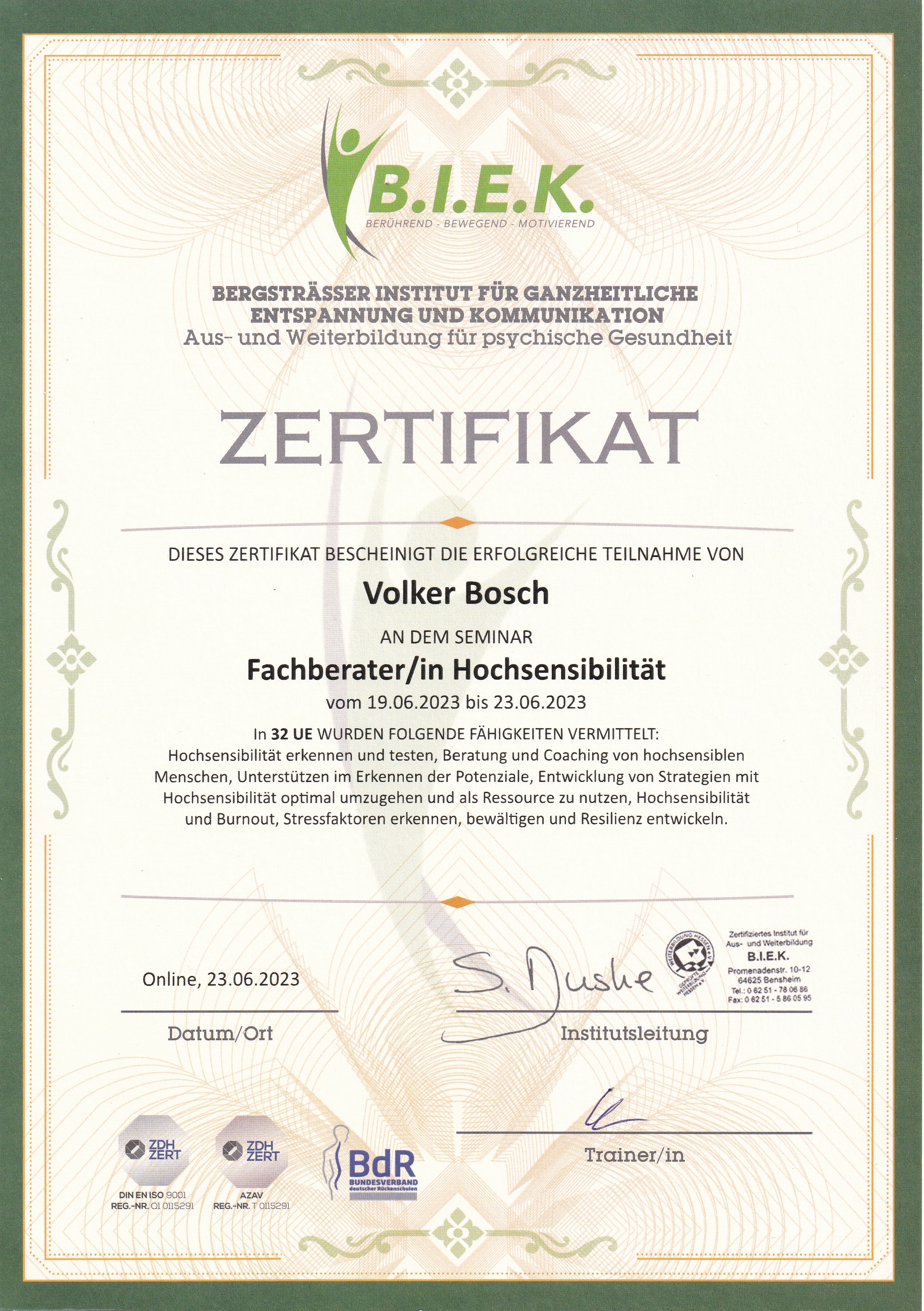 Ich stehe für all das offen und transparent – meine Ausbildung, meine Zertifizierungen und meinen Arbeitsstil kannst du jederzeit hinterfragen. Denn meine Überzeugung ist einfach: Wer gute Arbeit leistet, hat nichts zu verbergen.